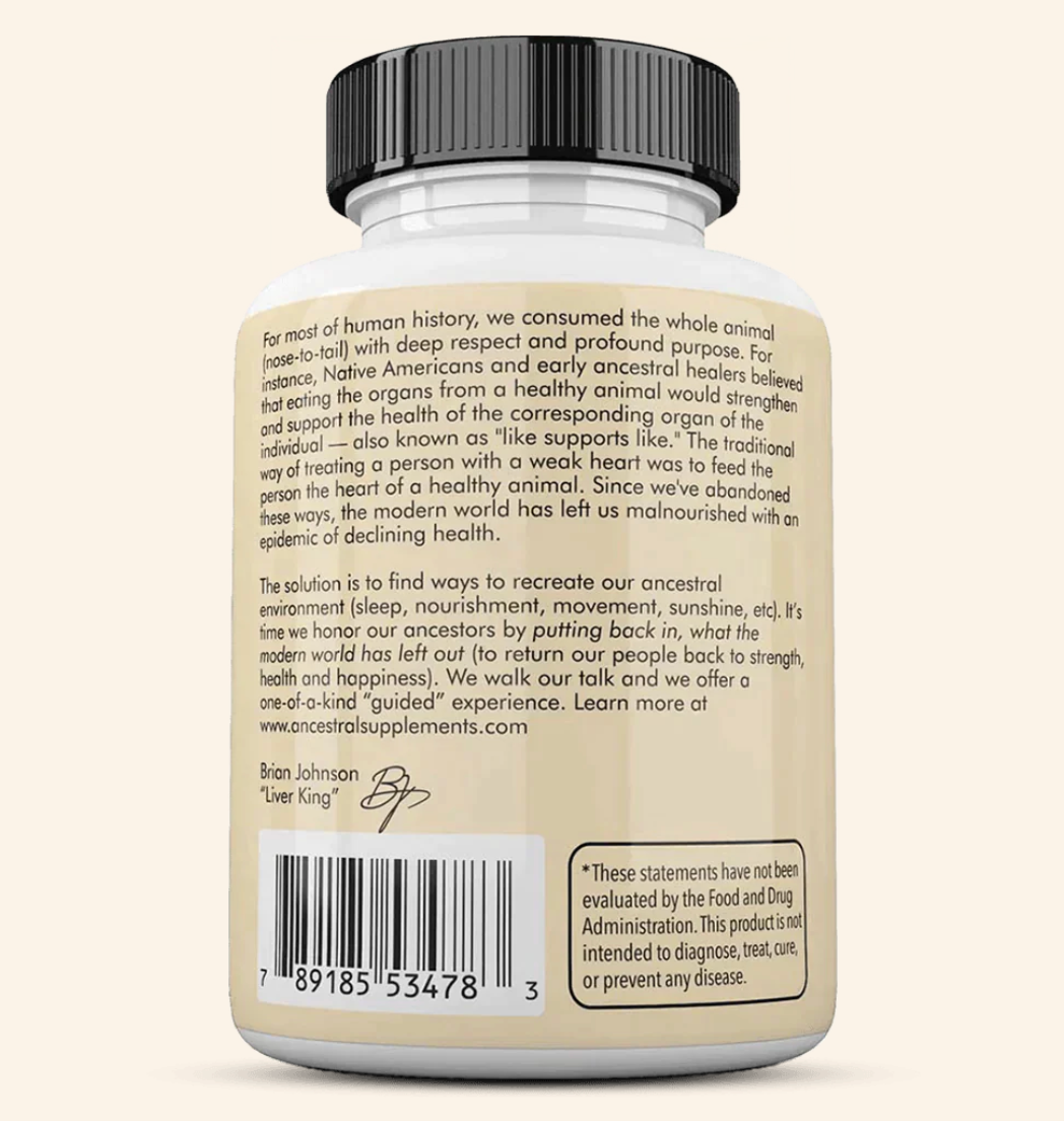 "Liver is nature’s ultimate superfood. Grass Fed Beef Liver provides the same raw, nutrient-dense power of fresh liver in a convenient daily supplement, making it the simplest and most effective way to reclaim your health and vitality."